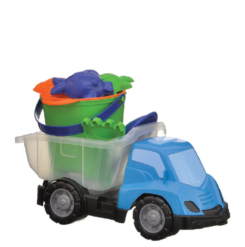 CAMINHAO BASCULANTE C/ BALDE DE PRAIA- REDE Peso: 0,51 kg Altura (cm): 40 Comprimento (cm): 18 Largura (cm): 23 Material: Brinquedos