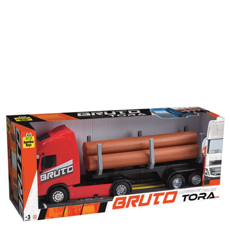 CAMINHAO BRUTO TRUCK - LOGGING TORA DE MADEIRA Peso: 0,32 kg Altura (cm): 18 Comprimento (cm): 44 Largura (cm): 12 Material: Brinquedos