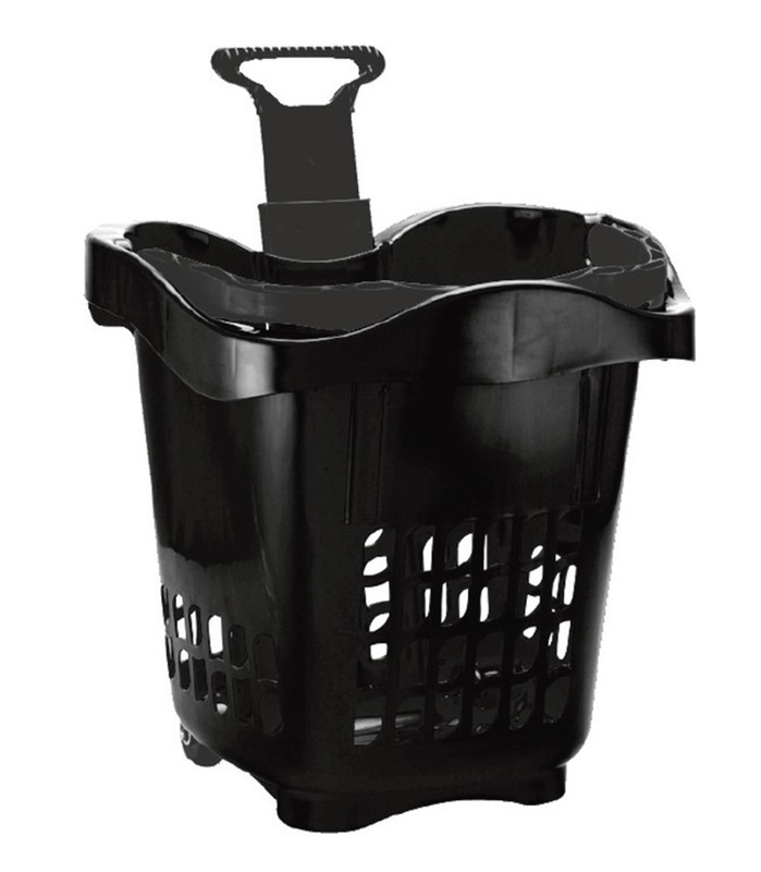 CESTA DE MERCADO C/ RODIZIO 30L PRETA Peso: 1,89 kg Altura (cm): 43 Comprimento (cm): 44 Largura (cm): 38 Material: Plasticos
