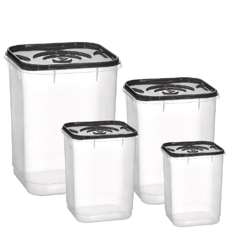 CJ C/ 4 POTES P/ MANTIMENTO 1,0/1,8/3,4/5,5L Peso: 0,48 kg Altura (cm): 24 Comprimento (cm): 17 Largura (cm): 17 Material: Plasticos