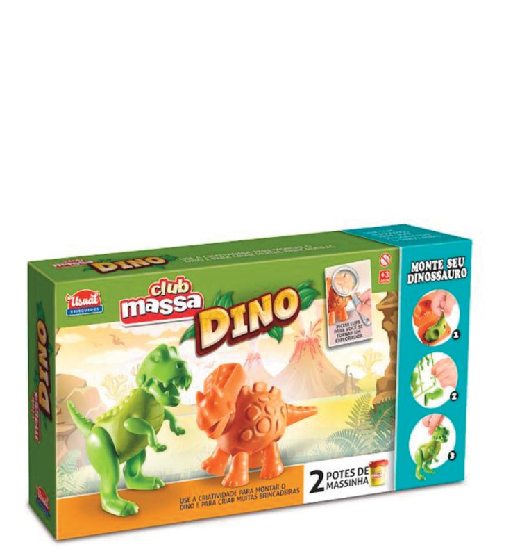 CLUB MASSA DINO COMPLETO C/ 02 POTES (50G) Peso: 0,16 kg Altura (cm): 21 Comprimento (cm): 40 Largura (cm): 6 Material: Brinquedos