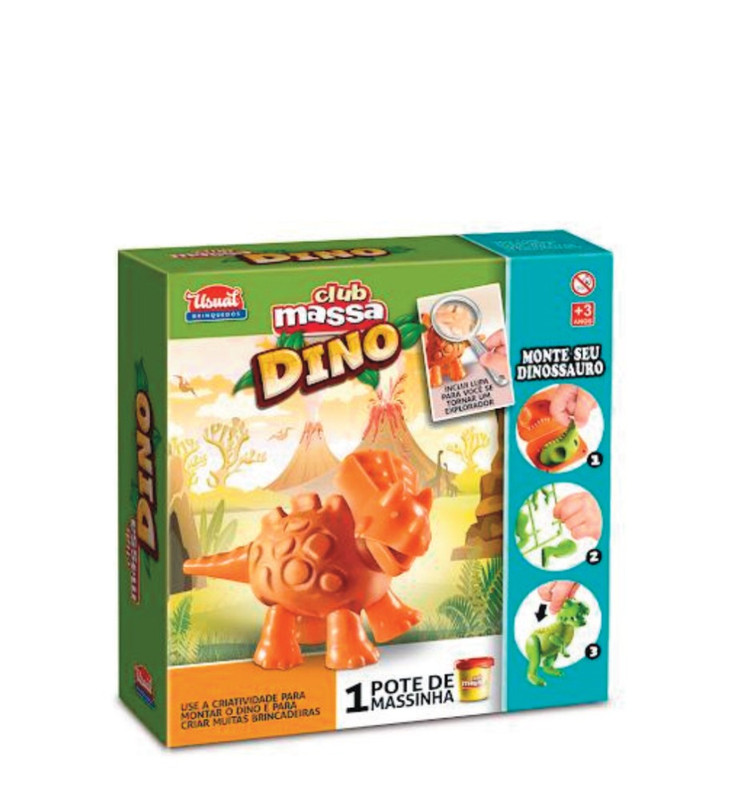 CLUB MASSA DINO SORTIDOS C/ 01 POTE (50G) Peso: 0,1 kg Altura (cm): 21 Comprimento (cm): 20 Largura (cm): 6 Material: Brinquedos