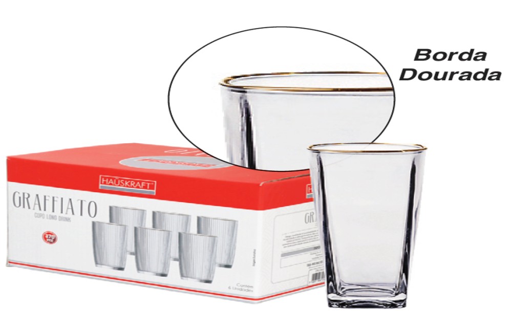 GLASS - COPO ALTO 280ML JG C/ 06 PCS PISA GOLD Peso: 19,7 kg Altura (cm): 1 Comprimento (cm): 1 Largura (cm): 1 Material: Vidros