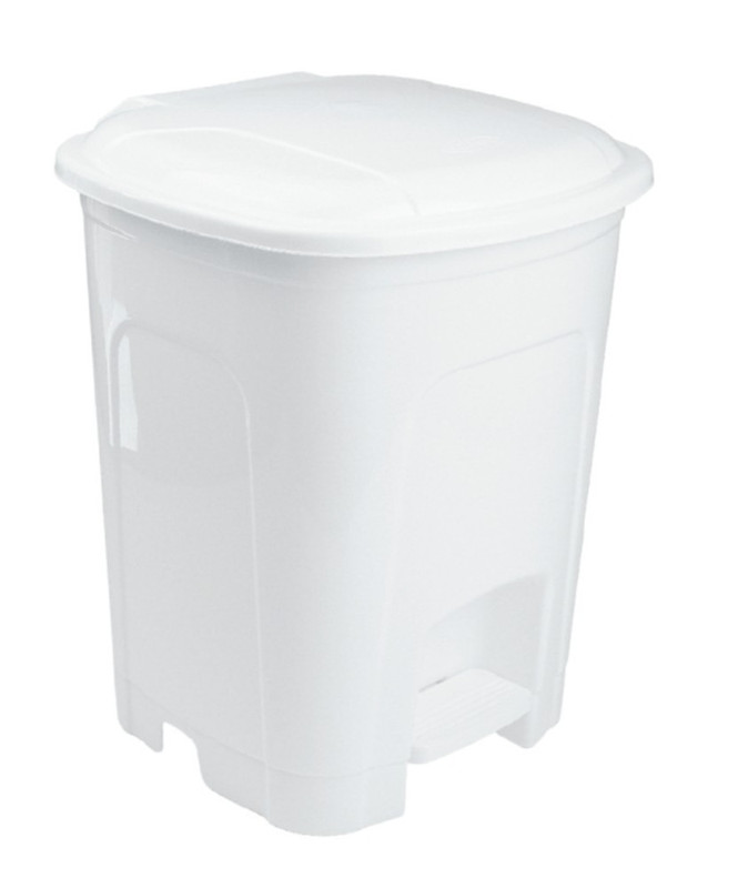 LIXEIRA C/ PEDAL 16L BRANCA Peso: 0,69 kg Altura (cm): 36 Comprimento (cm): 30 Largura (cm): 30 Material: Plasticos