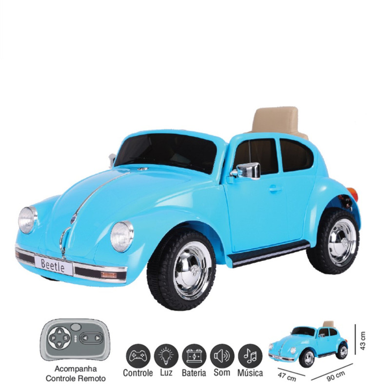 ZIPPY - MINI CARRO ELETRICO 12V FUSCA AZUL C/ RC Peso: 13,2 kg Altura (cm): 40 Comprimento (cm): 110 Largura (cm): 59 Material: Brinquedos