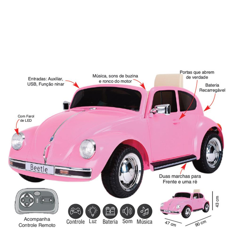 ZIPPY - MINI CARRO ELETRICO 12V FUSCA ROSA C/ RC